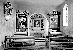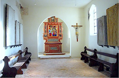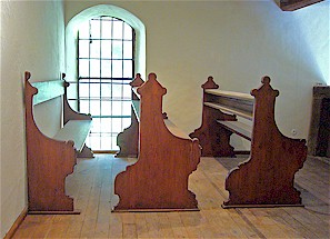 Bodenverankerung im Schiff der Kapelle. Diese Bänke