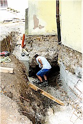 Isolierung des ursprünglichen Fundaments gegen Feuchtigkeit,